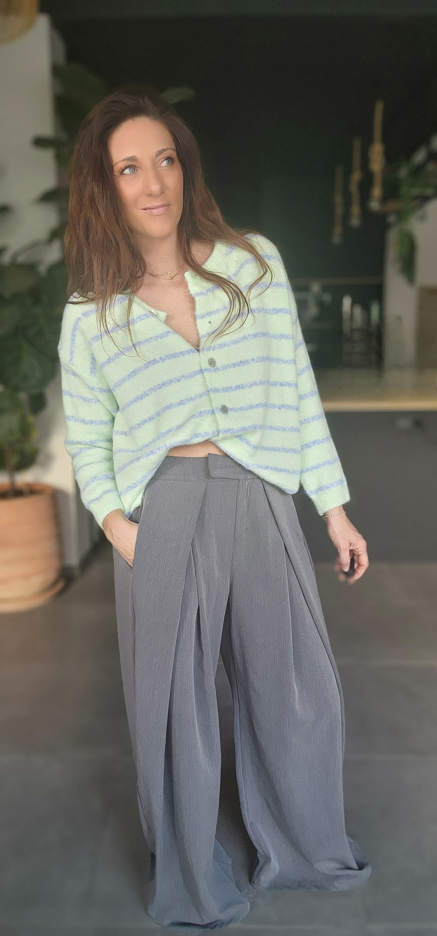 Gilet ALPAPOP Vert rayé Bleu