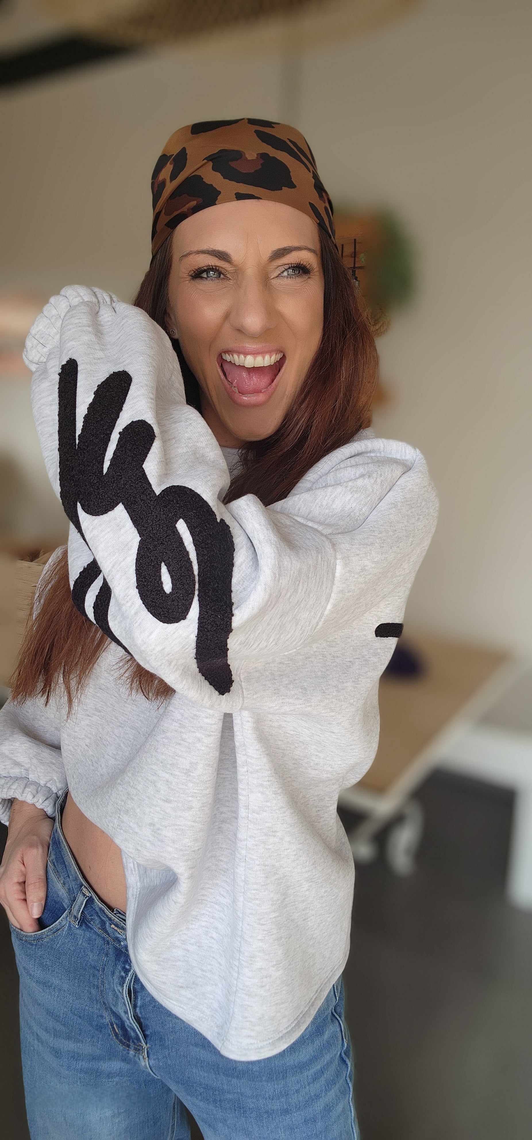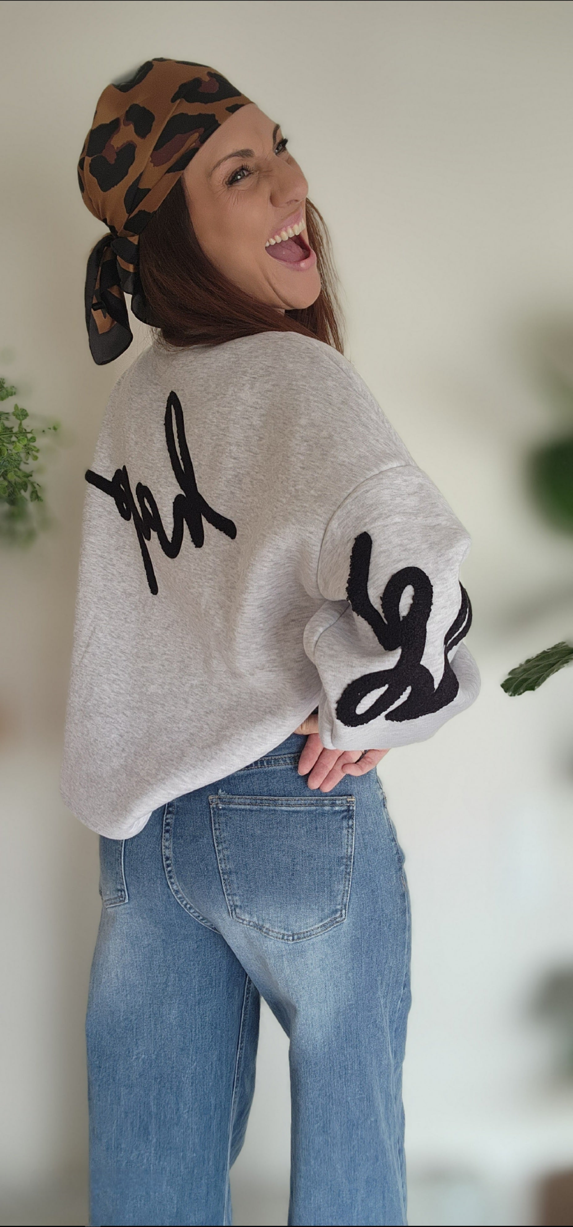 ULTRA TENDANCE ! Le sweat gris clair, BE HAPPY Noir, LA pièce incontournable de la saison.